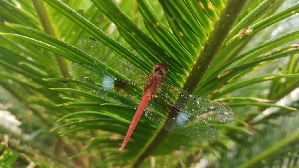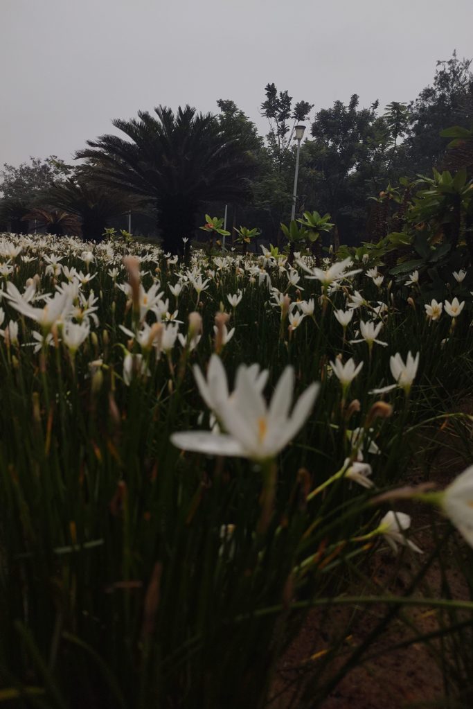“rainy days are incomplete without dragonflies, rain-dropped flowers and hazy sky.”